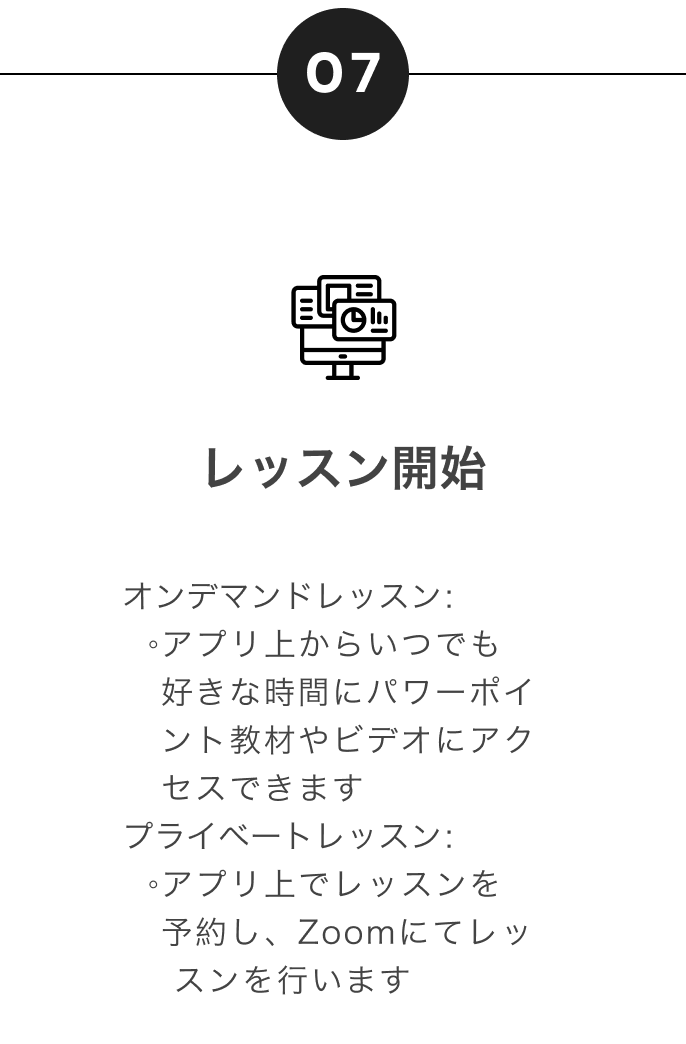 忙しい方でも自分のペースで学べるオンデマンドレッスンと、日米双方で経験を積んだバイリンガル講師陣によるプライベートレッスンで、あなたの“本気の挑戦”を全力でサポートします。