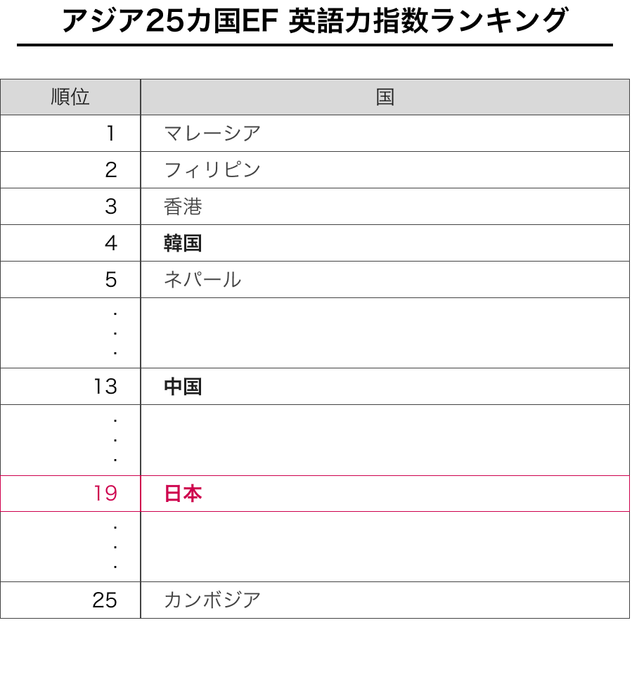 参照:EF (Education First)によるEF EPI英語能力指数*より